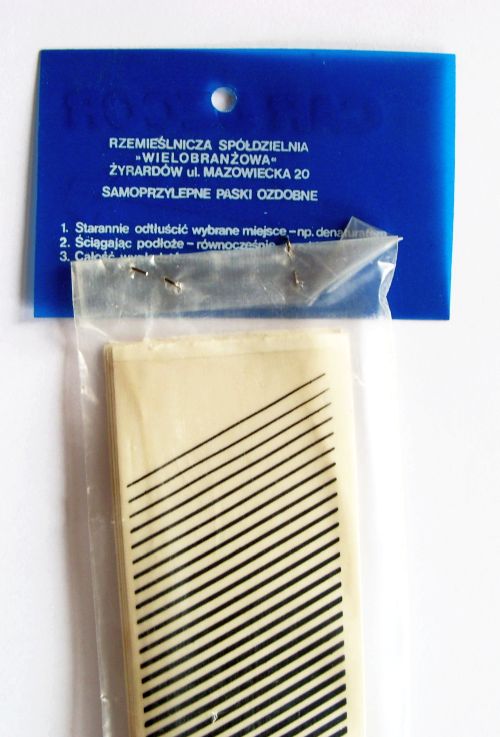Samolepiaci priehľadný pás s čiernymi pásikmi s nápisom LADA.