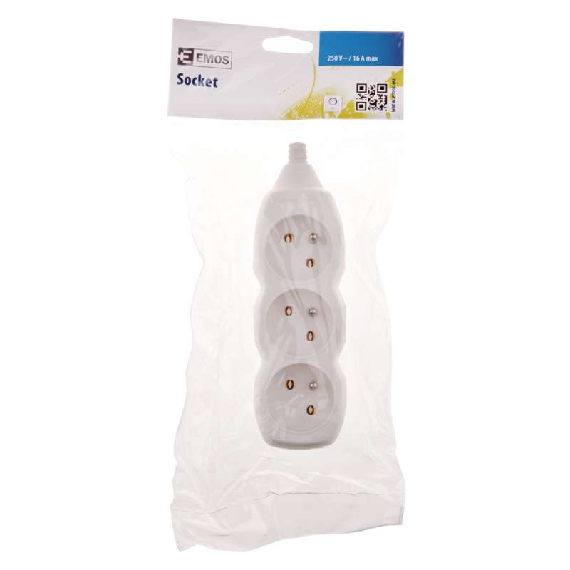Kvalitná samostatná zásuvka určená pre montáž predlžovacieho prívodu a na pripojenie elektrických spotrebičov podľa daného počtu zásuviek. Zásuvka je bielej farby bez vypínača.