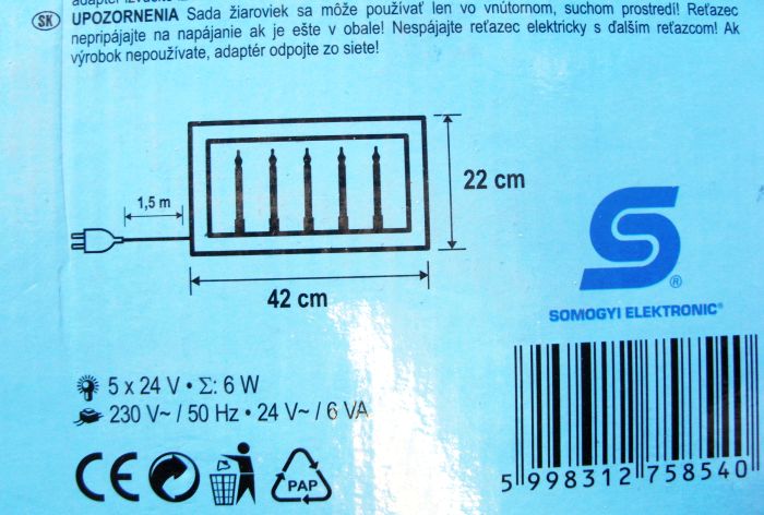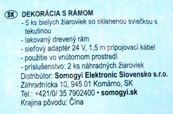 • 5 ks žiaroviek• biela• sklené banky uzavreté s priehľadnou bezfarebnou kvapalinou• lakovaný DREVENÝ rám• pre vnútorné použitie• s 24V adaptérom• náhradná žiarovka: L 5D